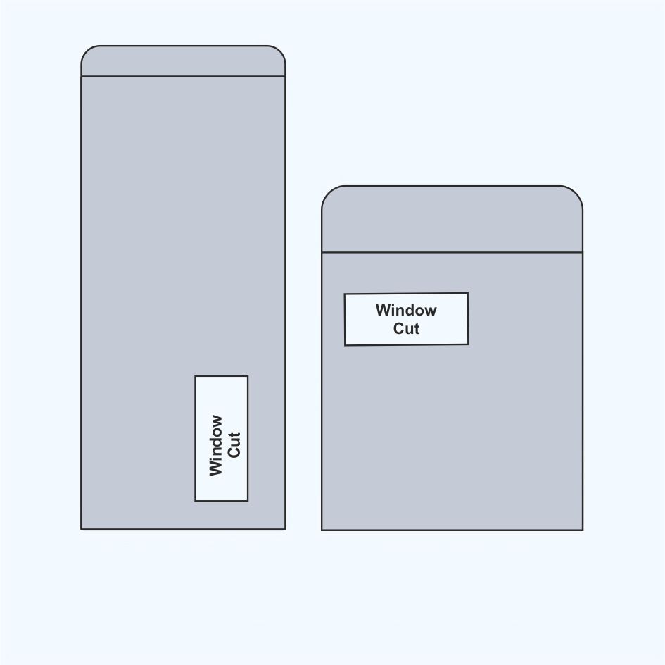 Window cut envelopes address visibility ke liye use hote hain, jaise bills aur notices.